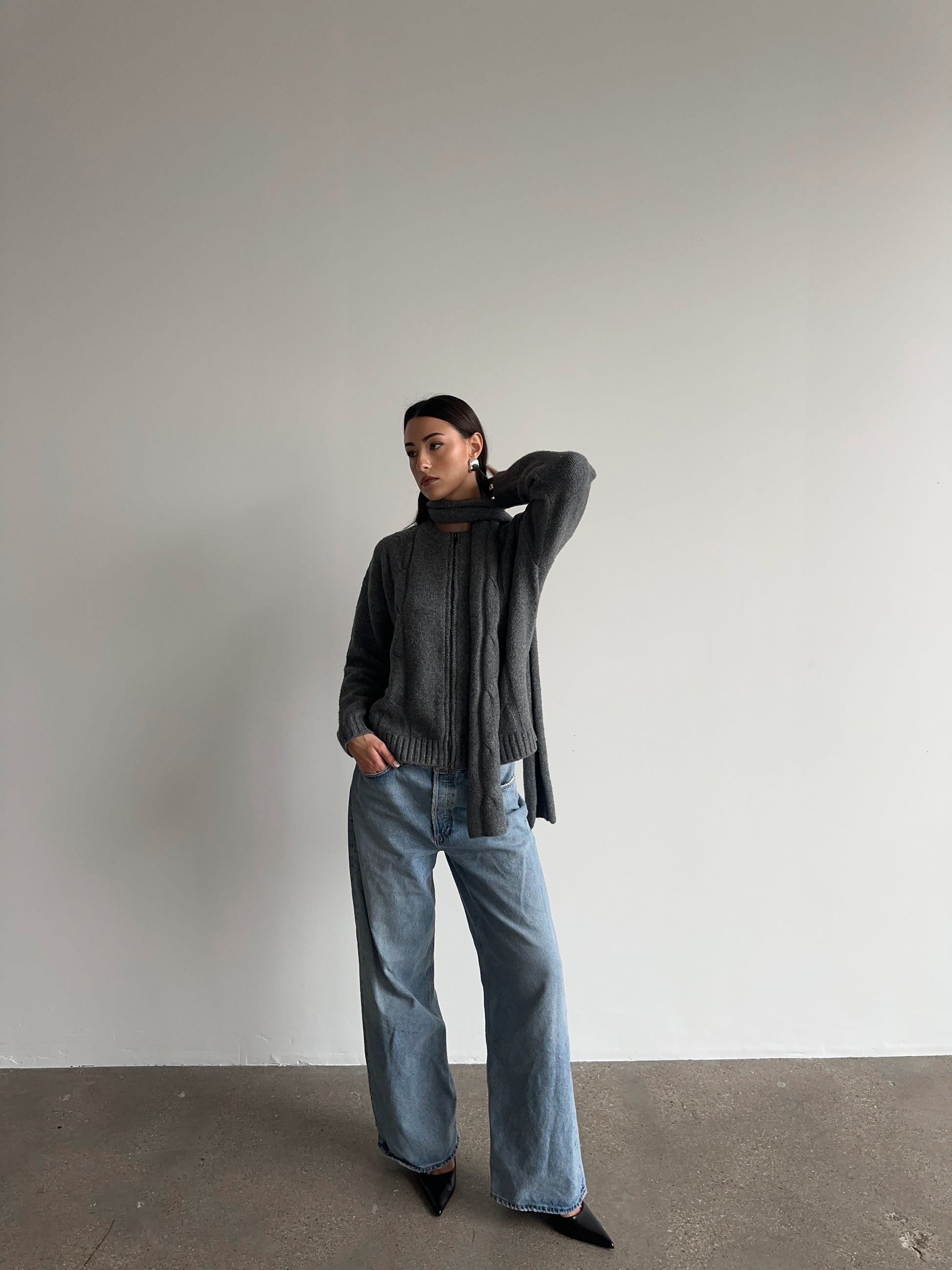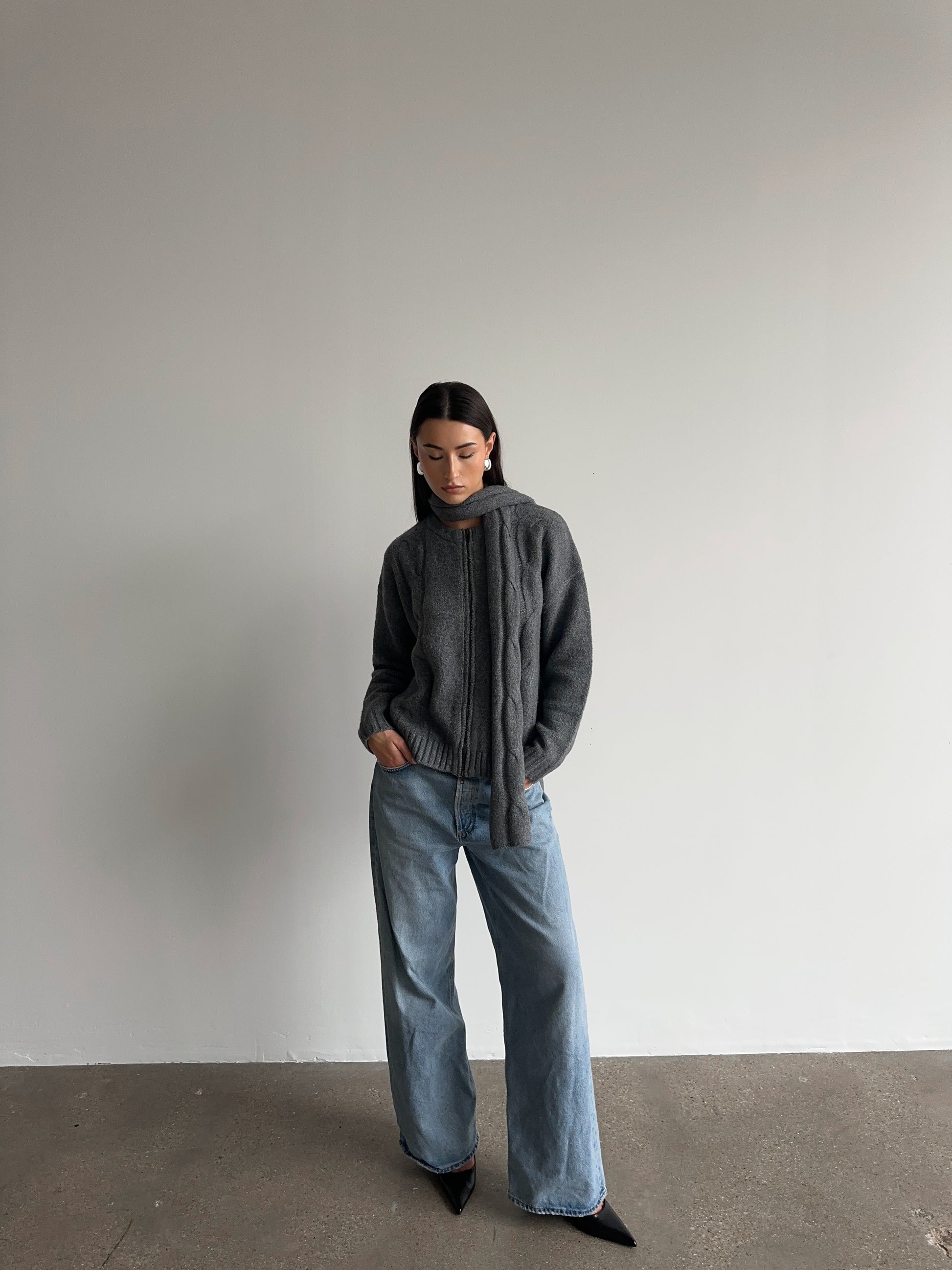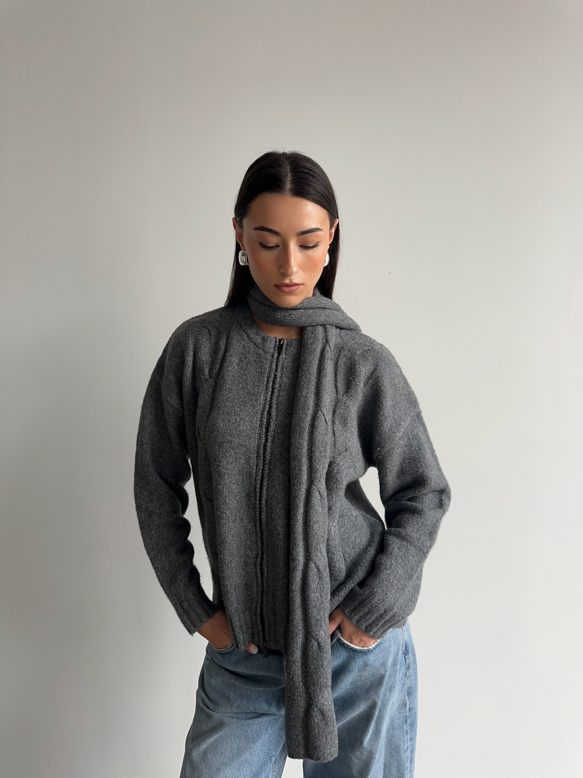 The Brooklyn Cardigan is a sophisticated take on cozy essentials, featuring an oversized style that offers a hip-covering length and a relaxed fit. The dropped shoulders enhance its laid-back appeal, while the cable knit design at the front adds texture and depth. Accompanied by a matching cable knit scarf, this cardigan seamlessly combines warmth and style.
